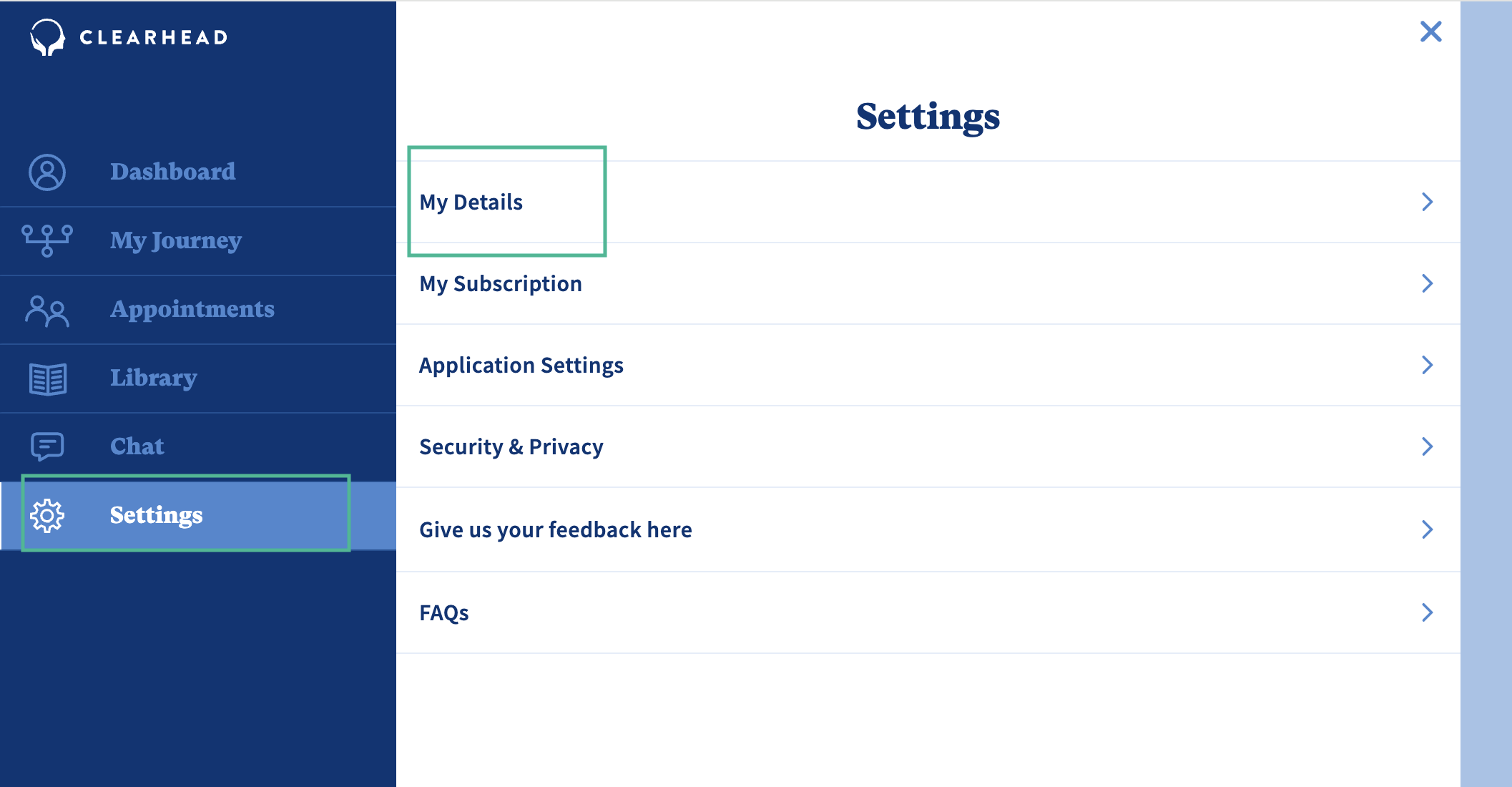 Settings > My Details