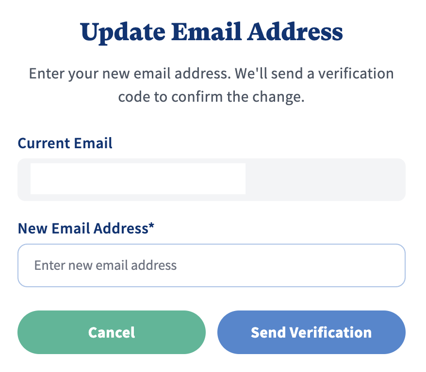 Enter the current email, new email and click 'Send Verification.'