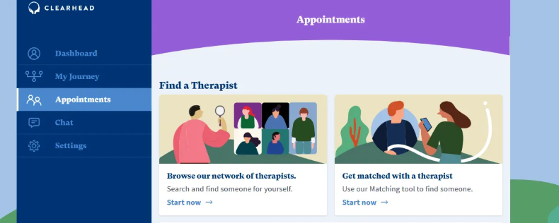 Click ‘Browse our network of therapists’ or ‘Get matched with a therapist’ to use our matching tool.