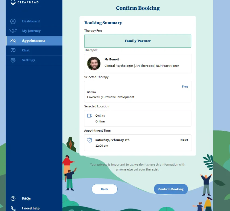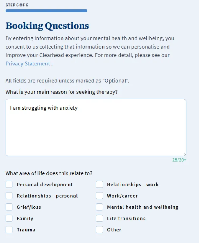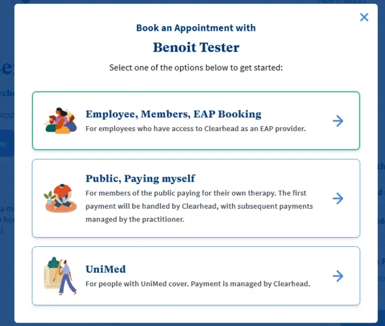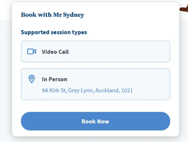When you have found a therapist, click into their profile and click ‘Book Now’.