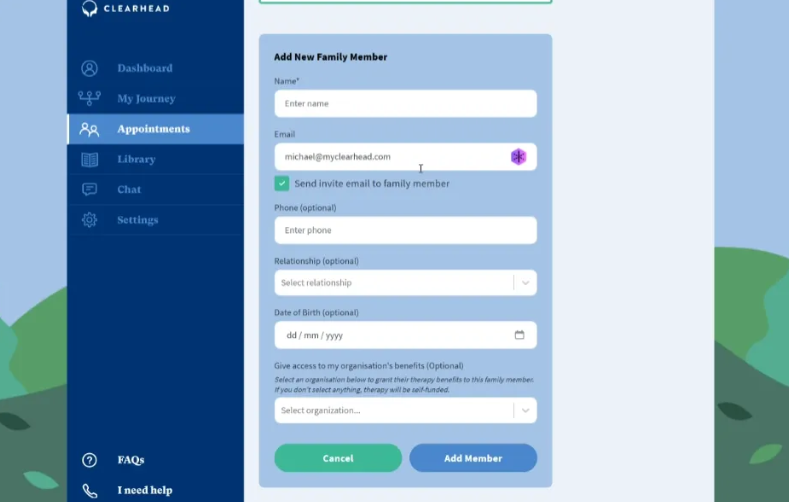 If you want them to be able to create their own account and manage their own bookings, enter their email address and tick ‘Send Invite email to family member’. They will receive an email saying you’ve invited them and be prompted to accept the invite and log in or create an account.