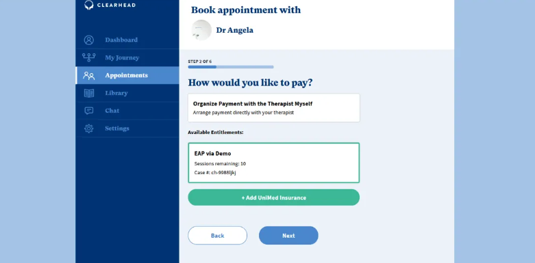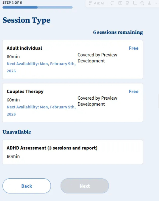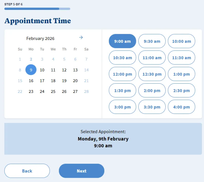 Select the Appointment Time (if therapist has their calendar synced) and press ‘Next’.