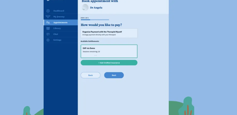 Alternatively, when you book family therapy and select ‘EAP via Your Organisation Name’ you will see the available sessions under ‘Sessions Remaining’. Entitlement for family are usually the same as your entitlements.