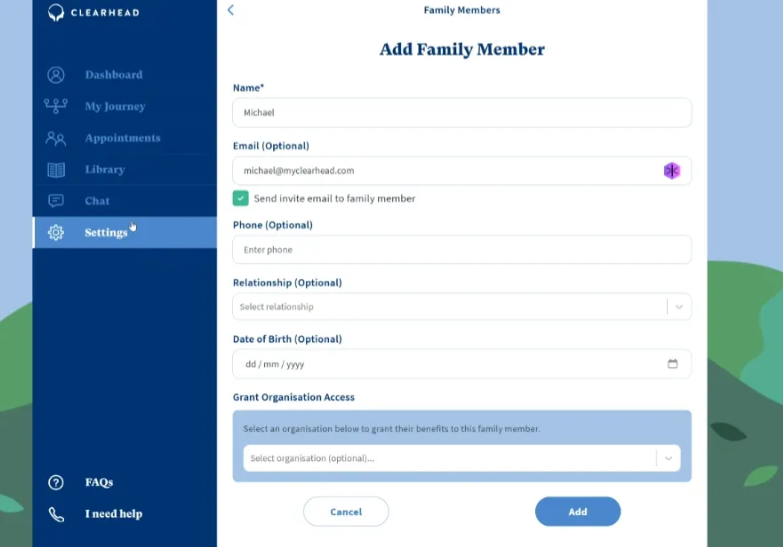 If you have entered their email and ticked ‘Send invite email to family member’ they will receive an email saying you’ve invited them and be prompted to accept the invite and log in or create an account.